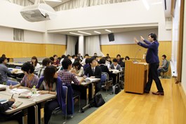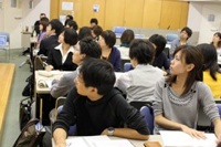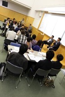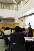 あいにくの雨にもかかわらず、約50名の学生が参加しました。講師の話に引き込まれ、あっという間の3時間半だったようです。ときにはディスカッションをして、それぞれの考えを伝え合っていました。